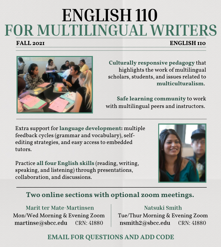 • When registering for an English class, look for the "MT" on the class schedule